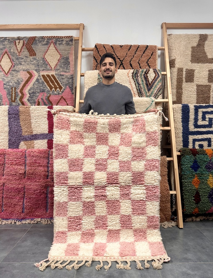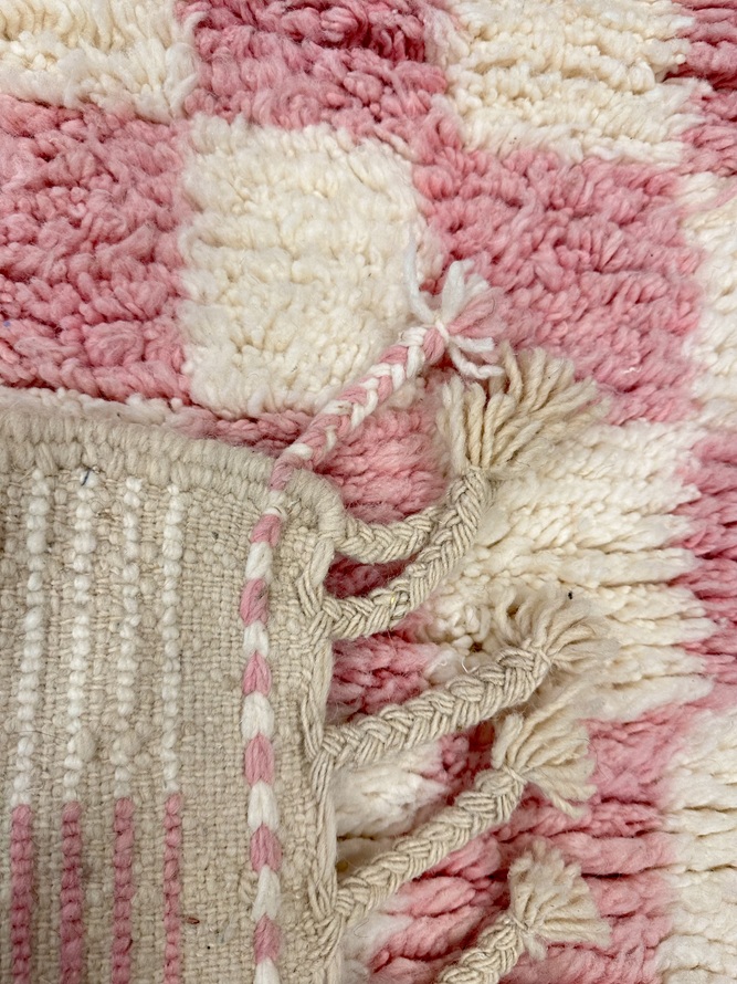 Beni Ourain Asahma to wyjątkowy dywan, który nada Twojemu wnętrzu niepowtarzalnego charakteru. Marokański dywan w kratkę to połączenie tradycyjnego rzemiosła z nowoczesnym designem. Geometryczny wzór szachownicy w odcieniach bieli i różowego wnosi wyrazistość do każdego wnętrza. Dywan róż w kratkę Beni Ourain Asahma wykonany został z naturalnej wełny.