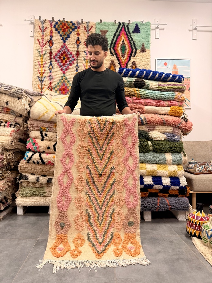 Mały dywan marokański Rojas to wyjątkowy przykład autentycznego rzemiosła, który łączy estetykę, trwałość i komfort użytkowania. Ten mały dywan wełniany został wykonany jako dywan ręcznie tkany z wysokiej jakości wełny, co podkreśla jego naturalny charakter i dbałość o detale. Delikatna kolorystyka w odcieniach różu, beżu i subtelnej pomarańczy nadaje wnętrzu ciepła i harmonii, a geometryczny wzór inspirowany kulturą dywan Maroko czyni go dekoracją o wyrazistym stylu. To oryginalny dywan marokanski, który idealnie wpisuje się w aranżacje boho, skandynawskie oraz nowoczesne. Każdy dywanik marokański powstaje jako rękodzieło z sercem, dzięki czemu jest to prawdziwie dywan unikalny, wykonany z poszanowaniem tradycji i naturalnych materiałów.